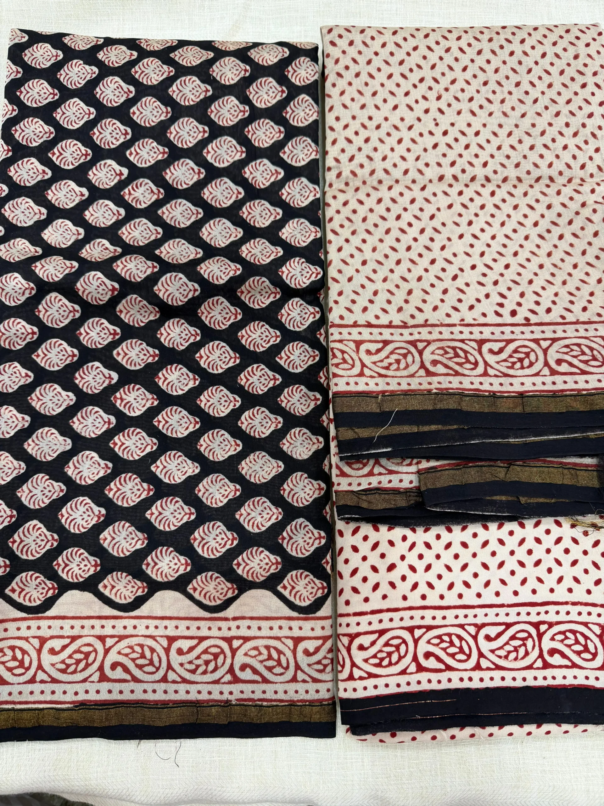 This pure Chanderi silk unstitched suit fabric features a refined teal blue shade blending deep turquoise and sea green for a timeless ethnic look. Designed with subtle traditional motifs and a floral printed dupatta, it offers understated elegance suitable for festive, office, and casual occasions.